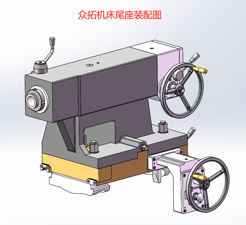 本機床尾座為手動結(jié)構,具有足夠的承載能力。尾座的移動由拖板拖掛拖動尾座縱向移動,尾座移動方便快捷,宜人性強。尾座由上、下體兩大部分組成,尾座上體內(nèi)裝有尾座套筒、尾座套筒移動機構和主軸中心調(diào)整機構。套筒鎖緊為手動。