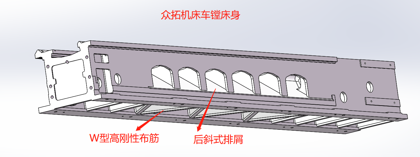 車鏜床結(jié)構拖板相對于普通結(jié)構拖板進行了充分的加強:拖板跨度加大、厚度加厚、燕尾跨度及高度增加、拖板后側(cè)增加安裝鏜桿支架底座的安裝面并加大了厚度;