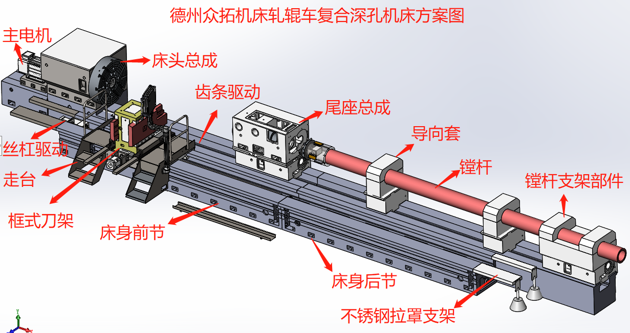 機床前半部分為車床結(jié)構,在機床后半部分增加了深孔結(jié)構: