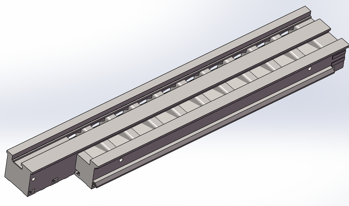 大拖板采用高強度低應力合金鑄鐵制造(HT250),毛坯鑄造完畢進行一次回火處理,粗加工結束,再進行一次回火處理,半精加工結束,最后一次精加工之前進行一次振動時效,結構設計保證熱對稱和熱穩(wěn)定性,有較高的剛性和強度。