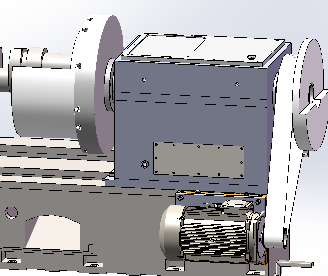 主軸傳動機構采用伺服電機通過同步帶輪連接主軸帶輪上傳動,前后床頭同步驅動。主軸部分由定位盤、主軸軸承、主軸等組成。主軸的軸承采用高精度可調整徑向間隙的雙列向心短圓柱滾子軸承,因而主軸旋轉平穩(wěn),并且精度高。另外床頭箱設有專門的潤滑機構,以確保各潤滑點得到充分的潤滑。