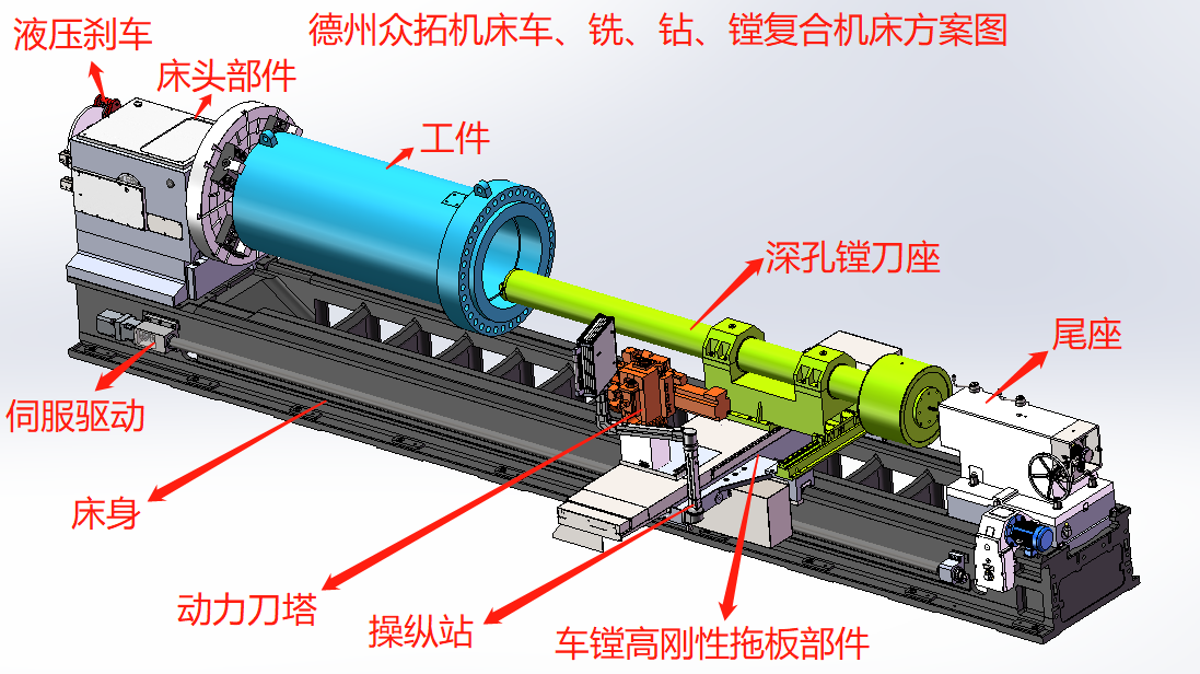 德州眾拓重型臥式數(shù)控復(fù)合機(jī)床,一次裝夾可完成復(fù)雜零件的車、鉆、銑、鏜等全工序加工,可大大提高加工效率,提升加工精度。