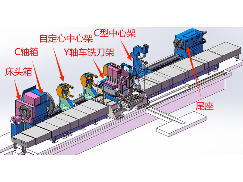 該機(jī)床是在我公司多年生產(chǎn)重型臥式車床經(jīng)驗(yàn)的基礎(chǔ)上,根據(jù)加工工件的自身特點(diǎn)自主開發(fā)的具有分度軸C軸,進(jìn)給軸X軸、Z軸、Y軸、主軸,五軸三聯(lián)動(dòng)的多功能,高效率的數(shù)控切削機(jī)床。